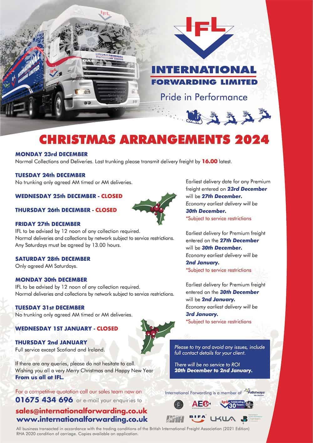 Contact us as soon as possible to discuss how we can help with your consignments during this busy time.