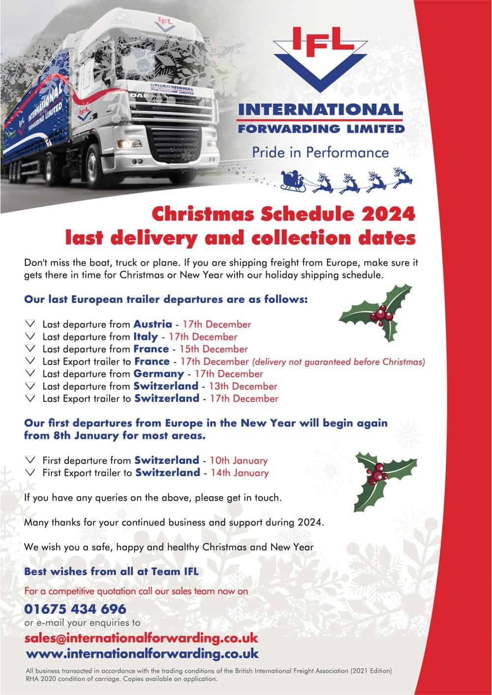 IFL Christmas schedule for freight to and from the UK and Europe